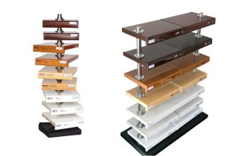Объемные, крупноформатные образцы подоконников, оконных профилей, стеклопакетов размещают в виде стационарных стендов. Стенды позволяют осмотреть конструктивные детали, визуально оценить функциональность продукта, эстетические свойства.