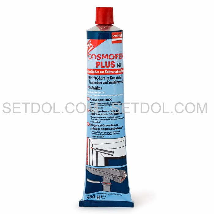 Туба с клеем очень удобна в использовании. Для выдавливания состава не требуется приложения чрезмерных усилий. Через достаточно широкое отверстие в головке тубы клей для ПВХ Cosmofen PLUS-S HV легко подаётся в зону монтажа. Для более прочного соединения состав необходимо равномерно распределить по склеиваемым поверхностям с помощью кисточки. Длительность застывания составляет стандартные 24 часа.